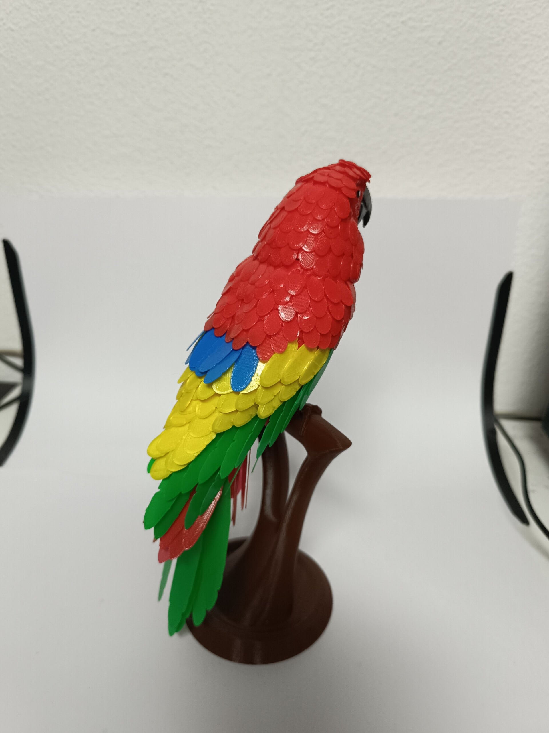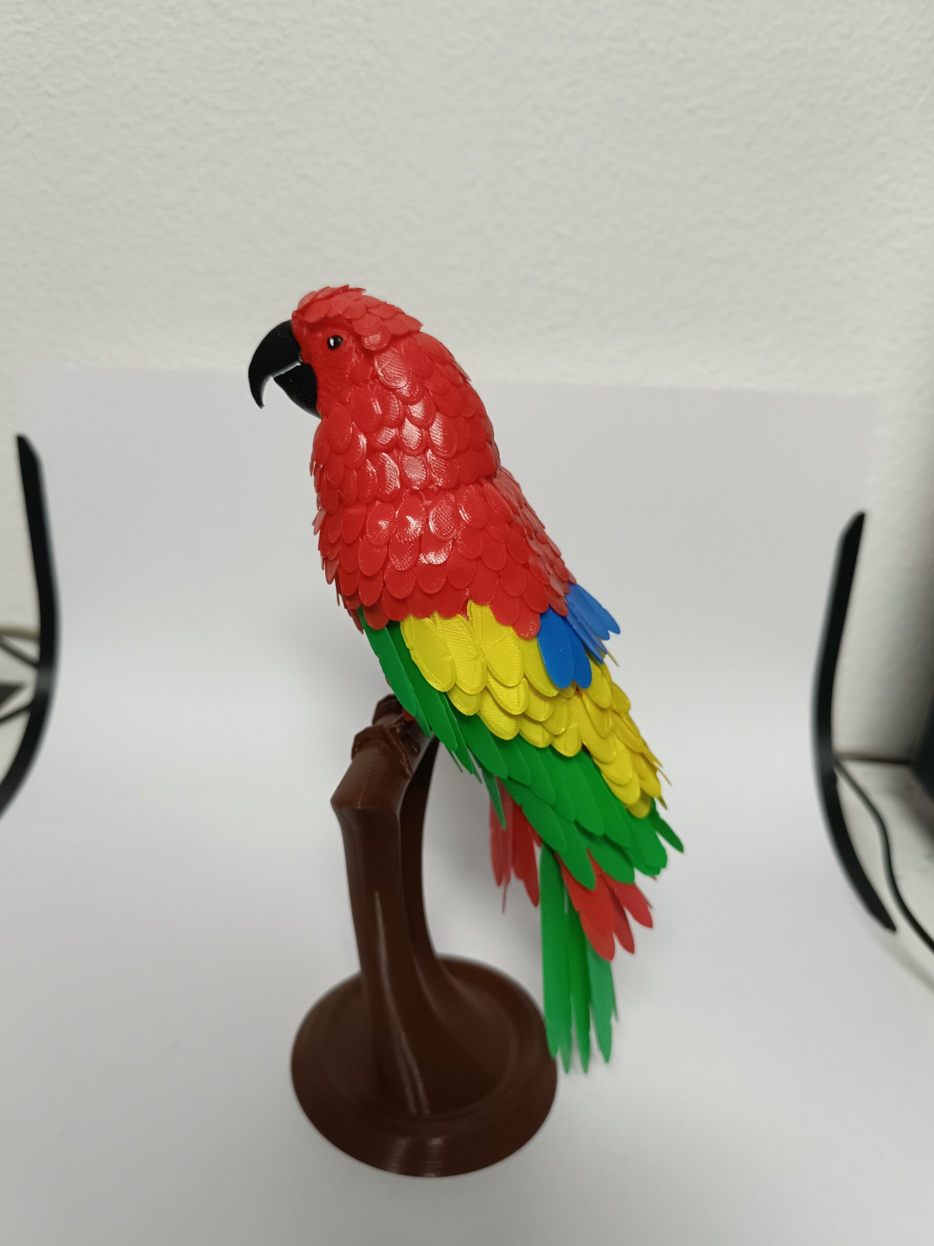 Federen sind auch aus dem 3D Drucker in denn Farben Grün,Blau und Gelb